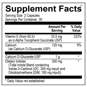 With 200mg of I3C and 100mg of DIM per 2-capsule serving, along with added calcium D-glucarate and antioxidants, CDG-DIM provides comprehensive support for proper estrogen metabolism. This helps maintain breast, cervical, uterine and prostate cellular health while promoting overall hormonal balance.