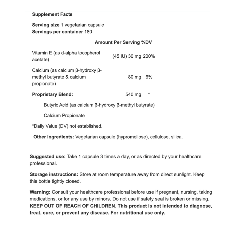 - Uses calcium beta-hydroxy beta-methyl butyrate, a form of butyrate, for maximum butyric acid delivery