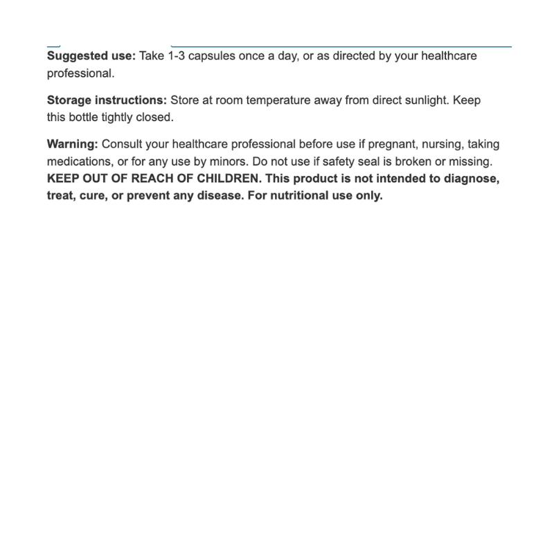 Suggested use: Take 1-3 capsules once a day, or as directed by your healthcare professional.