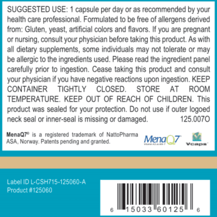 - MenaQ7® MK-7: Includes the most bioavailable form of Vitamin K2 for optimal absorption and long-lasting effects.